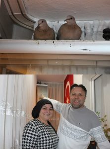 Amasya’da bir çift kumru kuşu, kışın ortasında evin balkon camına yuva yaptı. Sevimli misafirlerinin rahatsız olmaması için balkon camını kapatmayıp silmeyen ev sahibi Eftelioğlu ailesi, çifte kumruların hanelerine bereket getirdiğine inanıyor ve aylardır balkon camını açık bırakıyor.
